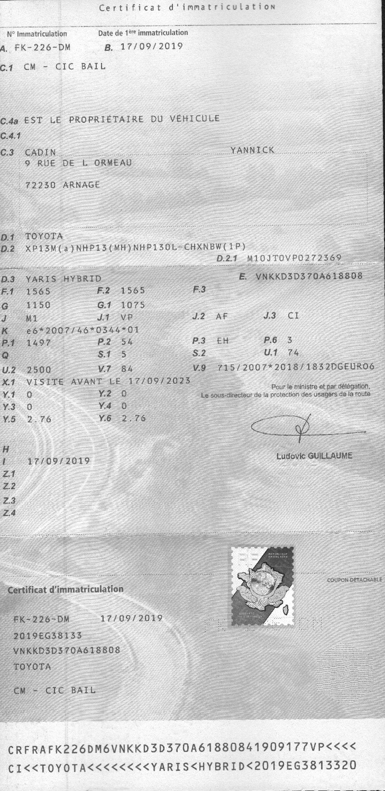 Carte Grise PREMIÈRE Toyota propriétaire Yannick Cadin.pdf