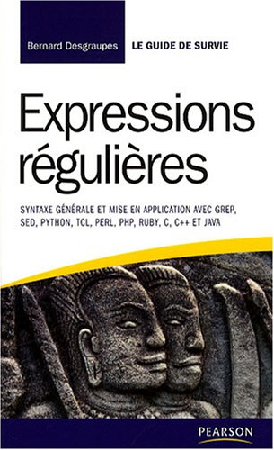 Présentation de l'éditeur: Une expression régulière est une suite de caractères typographiques qu’on appelle plus simplement « motif » chargée de décrire une chaîne de caractères pour la trouver dans un bloc de texte et lui appliquer un traitement automatisé comme un ajout un remplacement ou une suppression. Ce petit guide pratique est un récapitulatif facile à consulter illustré par des exemples concrets qui vous permettra de recourir rapidement et efficacement aux expressions usuelles et à maitriser leur syntaxe abstraite. Vous saurez utiliser les expressions régulières avec des outils d'édition de texte et les exploiter dans un cadre de programmation.